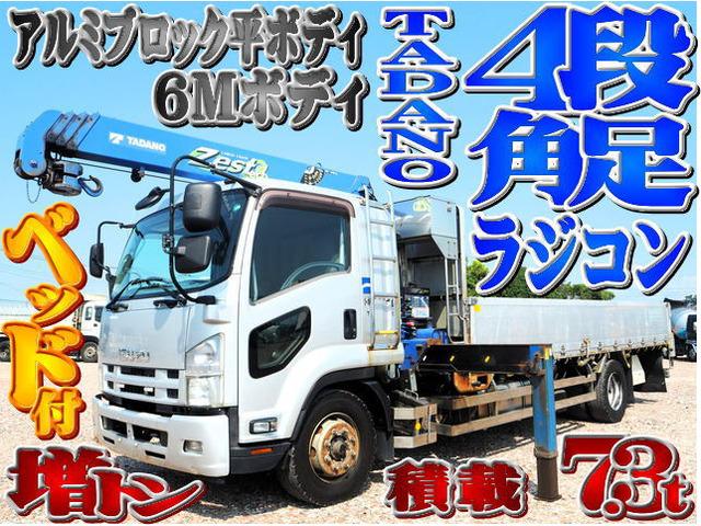 増トン!!積載7.3t!!ベッド付!!6mボディ!!セミワイドボディ!!フォワード標準幅の4段クレーン角足差し違いアウトリガーラジコン付アルミブロック平ボディになります。