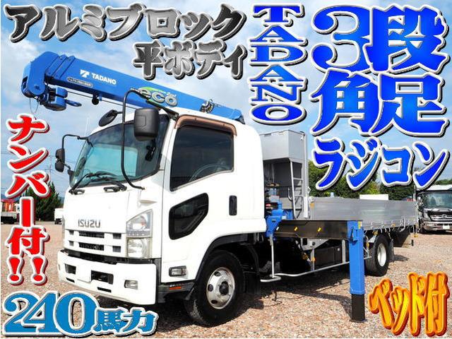 ベッド付!!240馬力!!セミワイド!!フォワードの3段クレーン角足差し違いアウトリガーラジコン付アルミブロック平ボディになります。