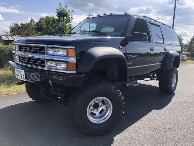 シボレー サバーバンの1999年式ブラックSUVが入荷しました。プロコンプ6インチキット、3インチボディリフトキットにてリフトアップ済みで、35X14.5R15インチのブロックタイヤで迫力があります。