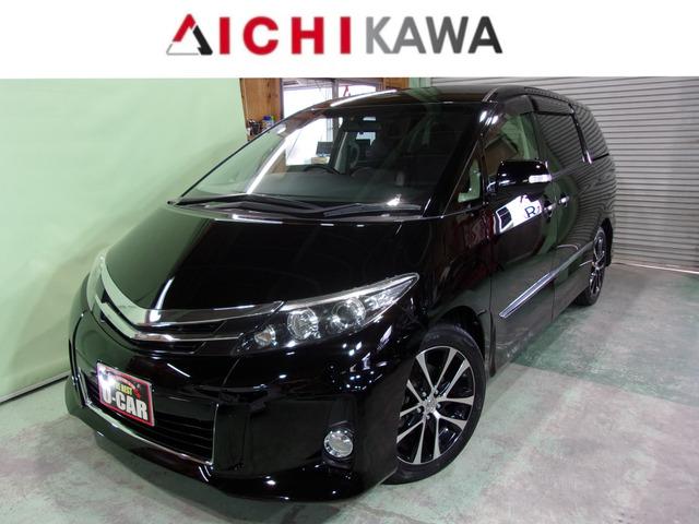 トヨタ エスティマ平成26年式、44,314kmのブラックミニバンが登場。ワンオーナーでたばこ臭なし。8型ナビとバックカメラで快適な運転を実現。両側電動スライドドアで乗降がスムーズ。ABSやETCも備え、安全&便利。保証付きで安心のドライブをお楽しみいただけます。個性的で使い勝手抜群のこの車、ぜひお試しください。